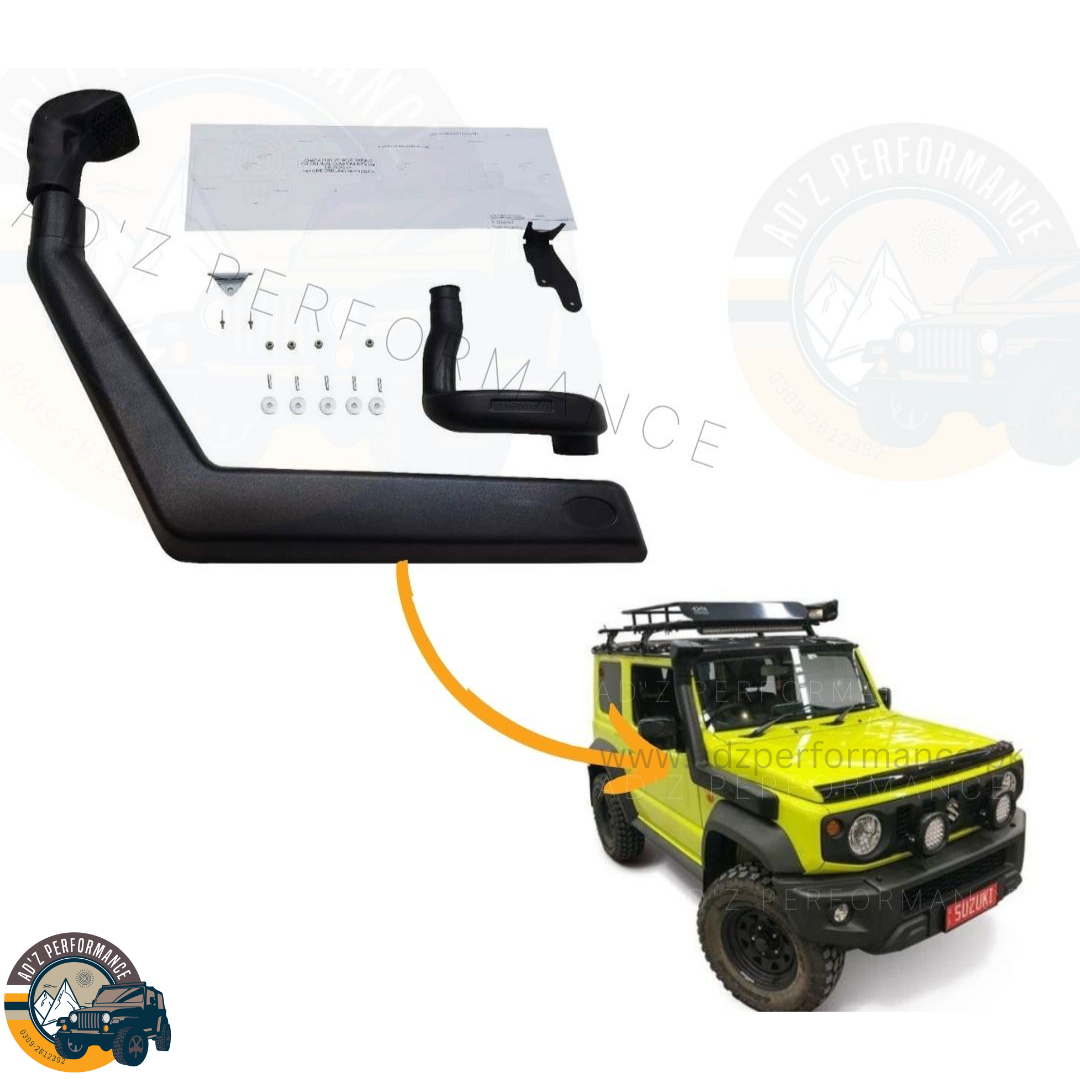 Brand NewSnorkel Air Intake KitModel: 011SAT0157XFor Suzuki Jimny2019-2022Right Side Fitment KitMade of high-quality plasticSurface finish: Black textured can be used asEasy to install item, It fits perfectlyFeatures of the installed snorkel• Improve airflow into the engine, allow cleaner air into the engine, help the engine breath easier.• Raise the air-intake above the water level.• Fuel saving• Protect engine, improve the performance of your 4×4.• The Cool Factor, a snorkel on your 4×4 does look ultra cool.
